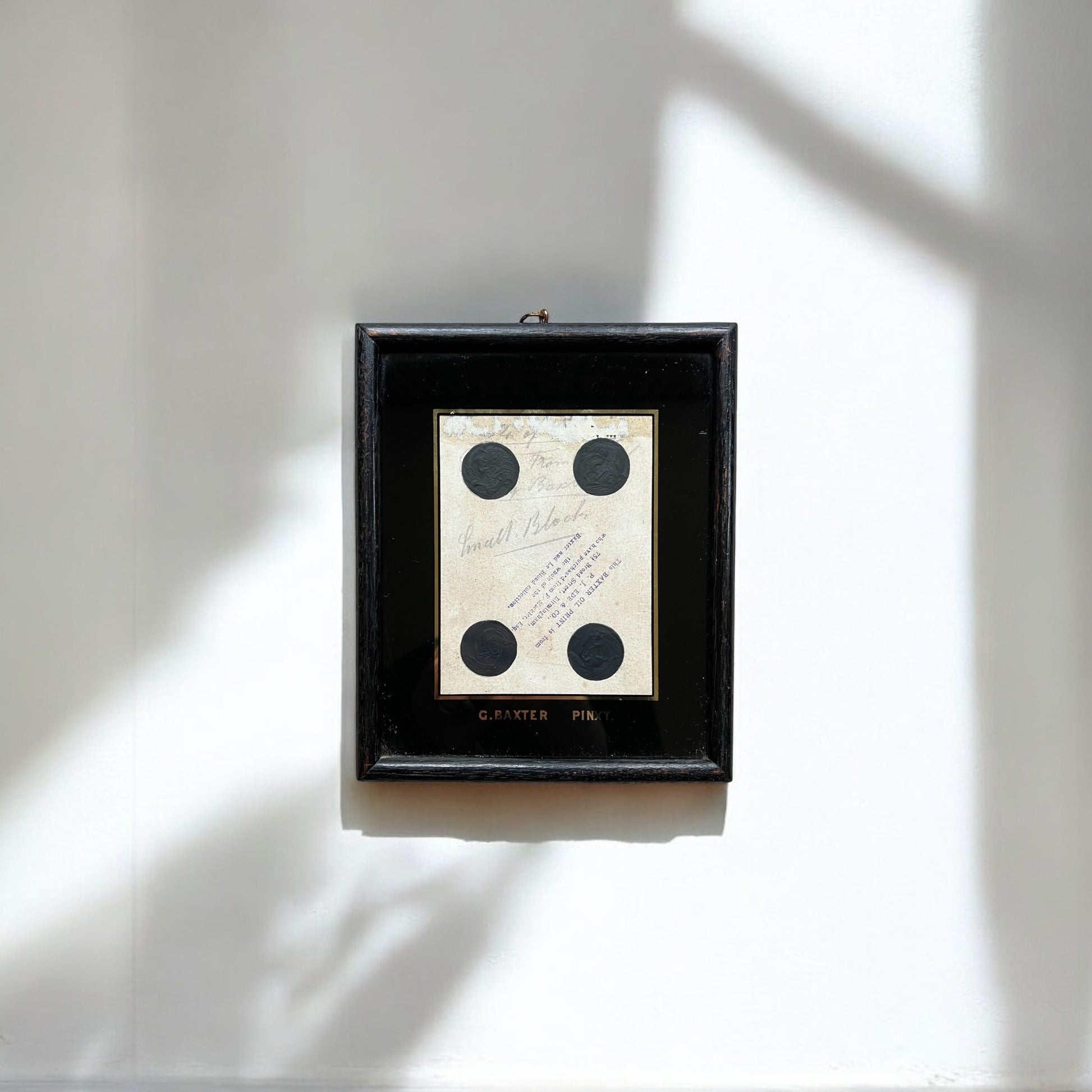 Household paint on the reverse of an early 20th century print that was originally housed In the early 20th century ebonised frame. 22cmx 18cm.