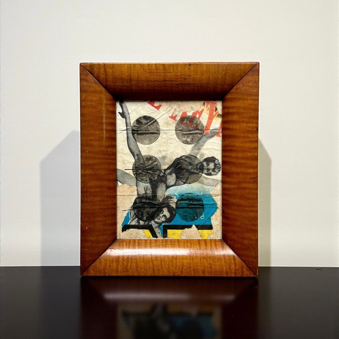 Ink and pen to 1950’s film poster fragment laid to 19th century timber board, framed and glazed in a 19th century maple veneered frame.