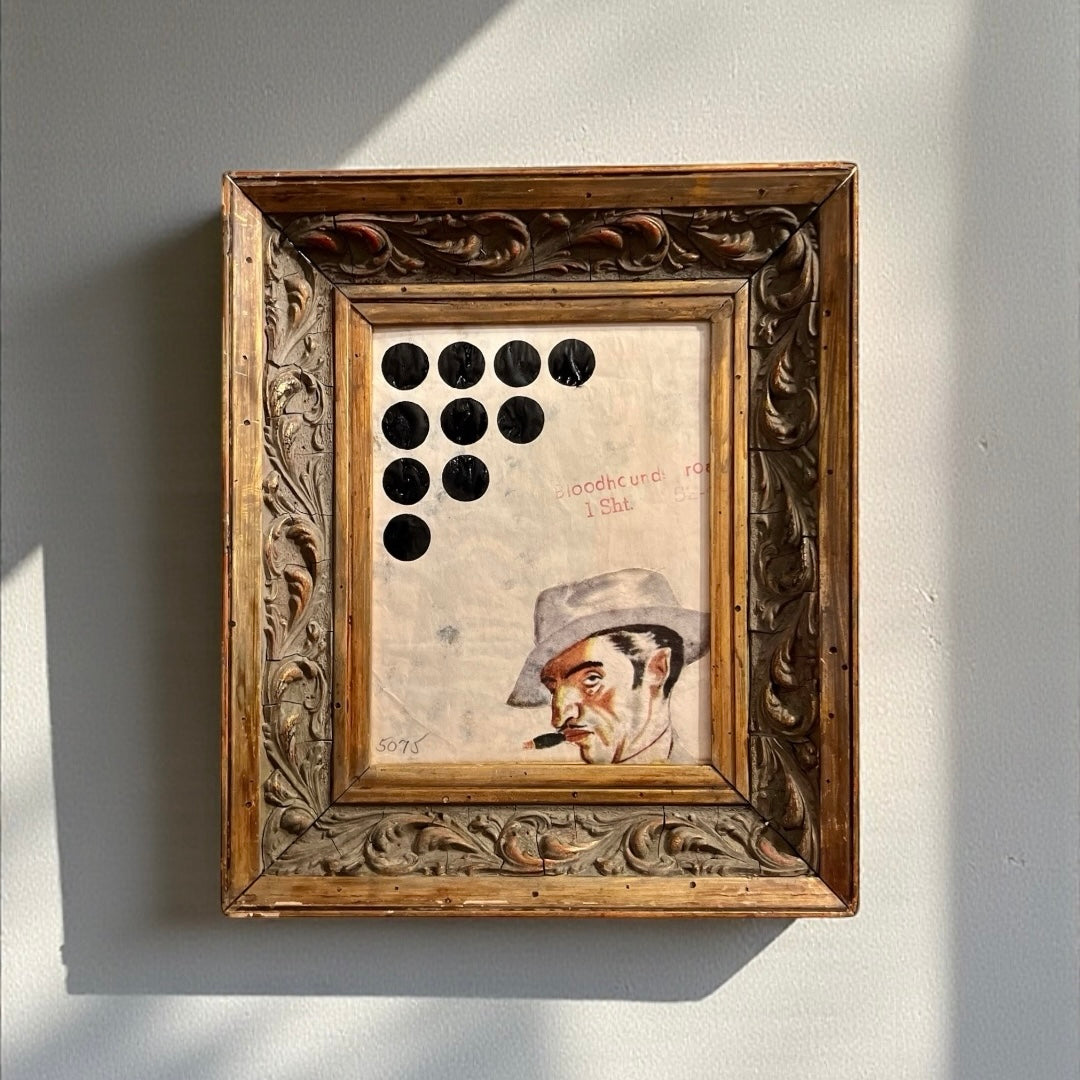 Mixed media and Indian ink to the reverse of a 1960’s film poster. Framed and glazed in a mid 20th Century gilt frame.