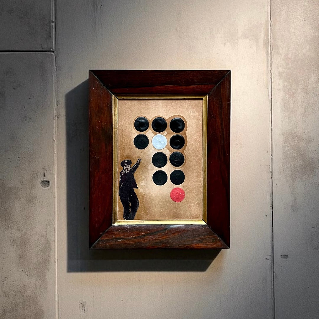 Mixed media applied to the reverse of a 19th century print. Framed and glazed in an original late 19th century rosewood frame, with beveled gilt border.