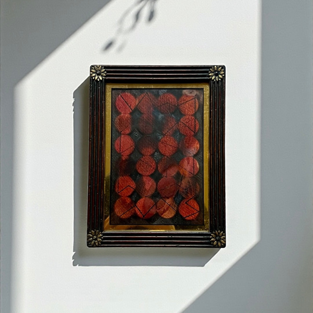 Scorched 19th center timber and pen. Framed and glazed in a late 19th century timber and verre eglomise frame.