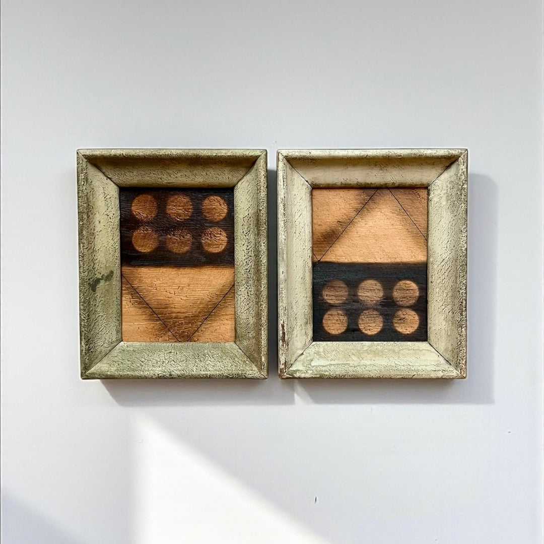Scorched 19th century timber and ink, framed and glazed in beautiful matching French early 20th century frames. The price shown is for the pair.