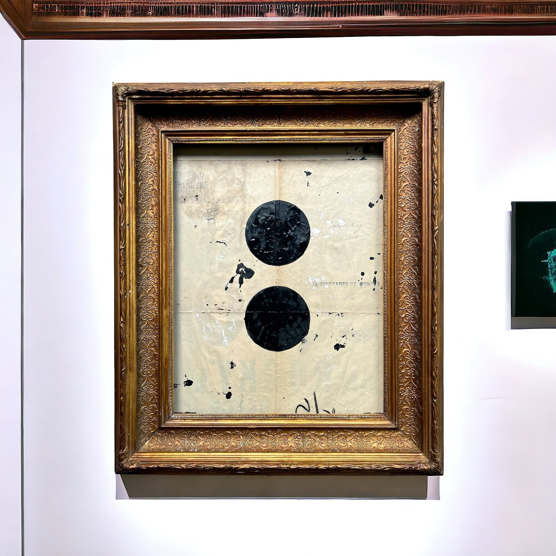 Household paint on the reverse of a vintage film poster. In a late 19th century deep gilt glazed frame.